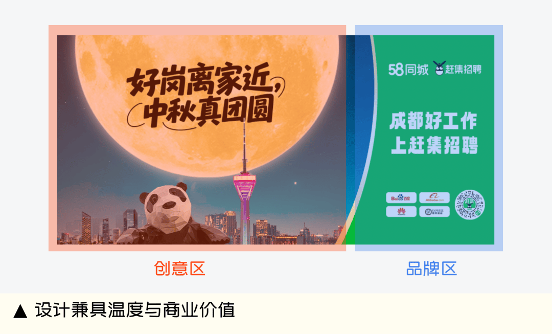 设想驱动品效”的新径。通过融合城市地标取品牌色,连系“中秋团聚”节点,