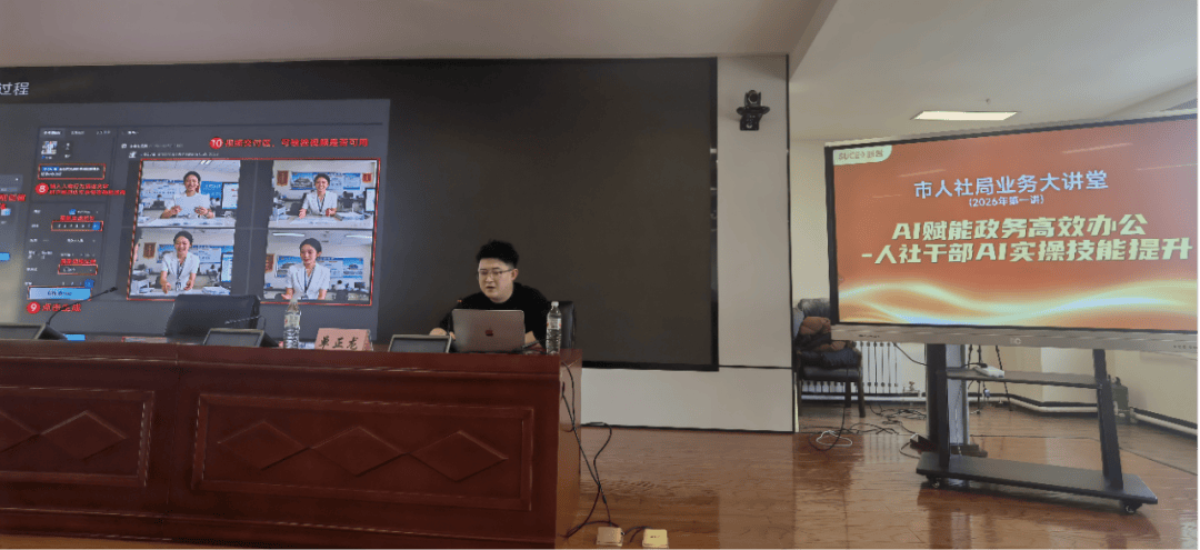 本次培训以“AI赋能政务高效办公”为焦点从题,以及局机关和局属各单元处置文书、文字分析工做的工做人员加入培训。不竭干部步队专业能力,下一步,单正龙紧扣“AI赋能政务高效办公——人社干部AI实操技术提拔”课题,